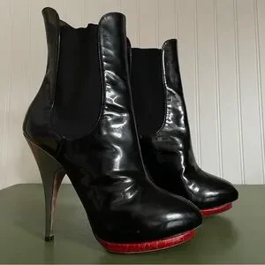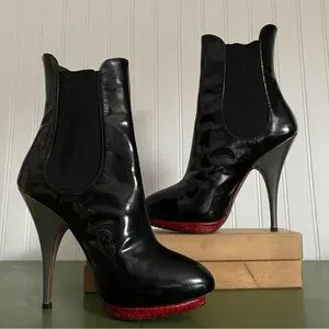 Giuseppe Zanotti Hidden Platform Stilettos in Black Patent Leather w Red *Italy*