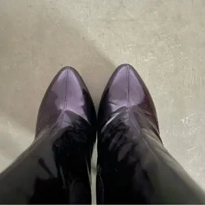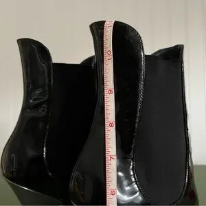 Patent leather uppers, leather linings and synthetic goring stretch panels on both sides. Made in Italy.