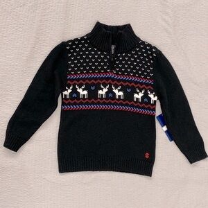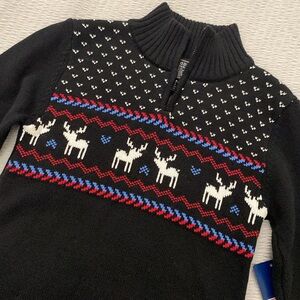 Izod Boys Sweater XS 4/5 Black 1/4 Zip Mock Neck Reindeer Fair Isle