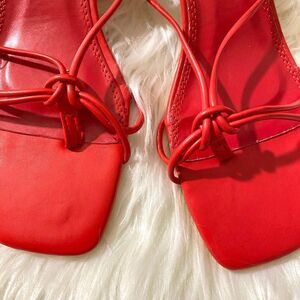ZARA RED LOW HEEL STRAPS SANDALS