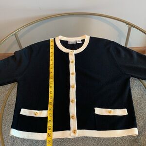Style Tags: Black & White Cardigan Sweater White Trim Classic Elegant Chic Sophisticated Professional Business Chic Office