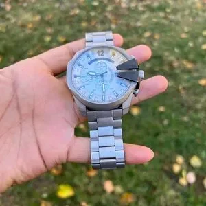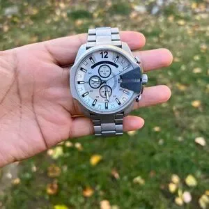 Diesel Mens Mega Chief Chronograph Silver-Tone Stainless Steel Watch