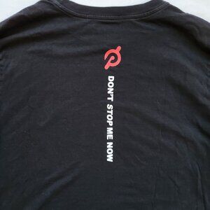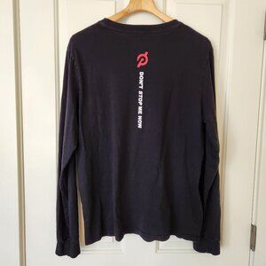 Peloton X Queen Global Tour long sleeve shirt, dark black, signature P on the back with "Don't Stop Me Now" text.