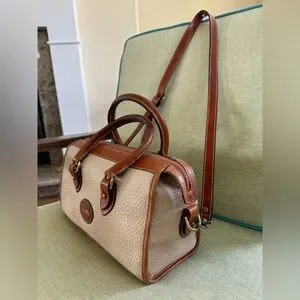 Dooney & Bourne Vintage Zipper Satchel in British Tan and Bone