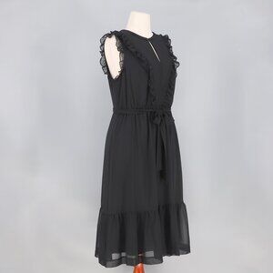 BODEN Elise Midi Dress in Black Draped Georgette Ruffle Notch Neck Size 12