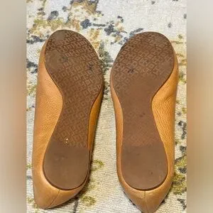 Tory Burch Reva Brown Tumbled Leather Gold Logo Ballet Style Flat Shoes | Sz 7