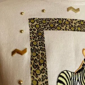 P.G.B. Zebra Sweatshirt 90s Animal Pattern Squiggle Glittery Shiny Beaded