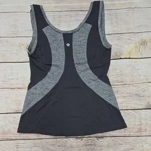 Stylish lululemon athletica tank top. Features a sleek black and gray design. Perfect for workouts or casual wear.