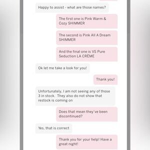 All 3 have been barely used… please see photos for levels. All 3 are also discontinued per Victoria’s Secret.