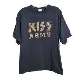 Kiss Army Size L T-Shirt Vintage Vinyl 2005 100% Cotton Black Camo Spellout Y2K