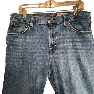 Wrangler Jeans Mens Dark Blue Relaxed Boot Western Cowboy Cotton 34X30 Tag READVery good pre-owned condition.  Please see all photos for details & measurements.