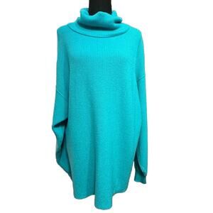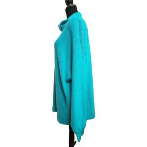 Free People Sweater Medium Womens Slouchy Ribbed Oversized Turquoise Minimalist