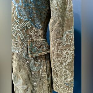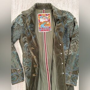 Excellent, like new condition Johnny Was / Two Ten Ten Five / Biya embroidered long coat / duster with button closure.