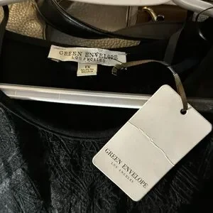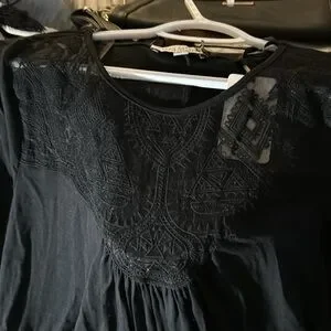 New with tags Green Envelope women’s top. 3/4 sleeve lacy chest inset. Size 1x black