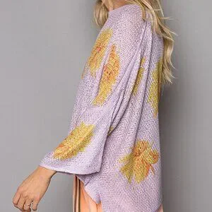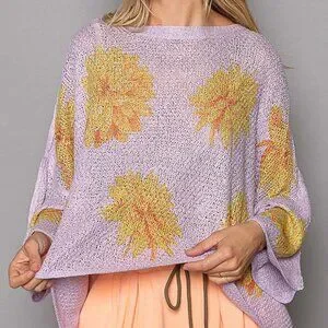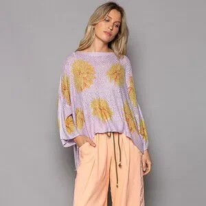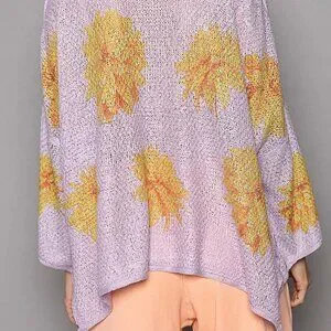 POL LILAC Round Neck Flower Print Solid Light Weight Sweater Top