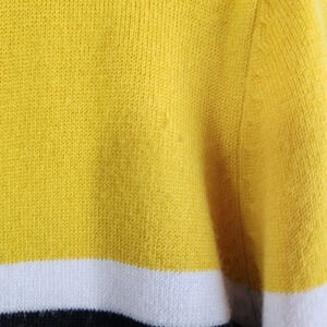 Red Button Cardigan Size L Yellow Block Black White Striped Long Sleeve *READ*