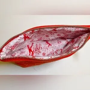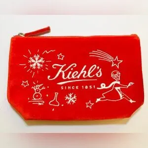 NWOT! 😊 Kiehl's Red Velvet Makeup Bag/ Cosmetic Pouch w/White Embroidery
