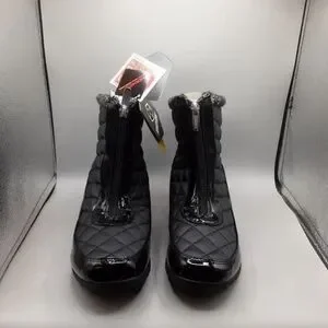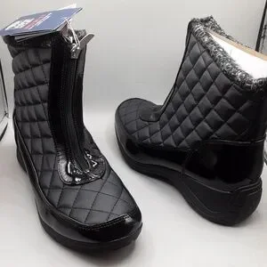 New Khombu Women's Shoe Ankle Boots Bootie Megan Waterproof Front Zip NIB Black