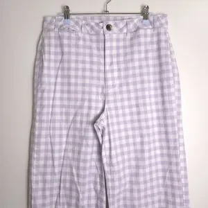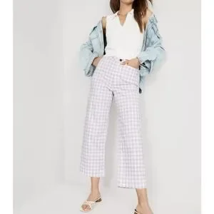 OLD NAVY Retro Gingham High-Waisted Cropped Wide-Leg Chino Pants 10 Tall