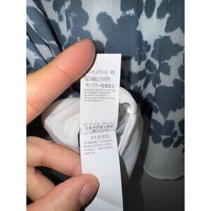 Les Copains V-Neck Floral Sequined Shirt Top Size 44 Stretch NWT Blue White Luxe