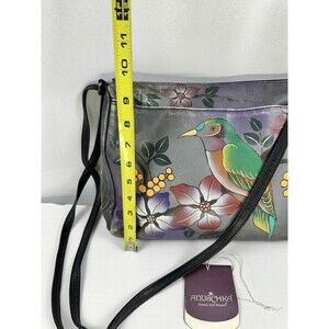 Anuschka Hand-Painted Leather Medium Cross Body Bag Bird On a Branch