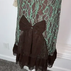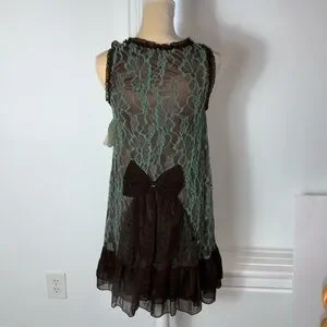 Altar’d State NWT Mint Green and Brown Lace Sleeveless Dress with Bow Size Small