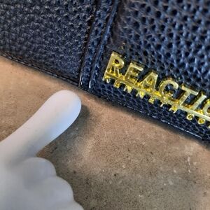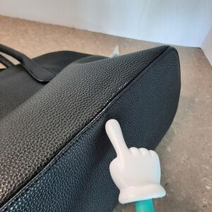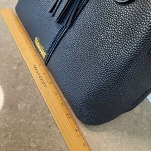 Kenneth Cole Handbag Large Black Tassel Gold Logo Pebbled Faux Leather NWOT