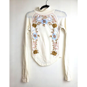 Free People Womens Top Disco Rose Heavily Embroidered Floral Ivory Cream Boho