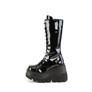 Size 10 NEW Shaker 72 Black Patent 4.5" Wedge Platform Mid Calf Goth Pu…