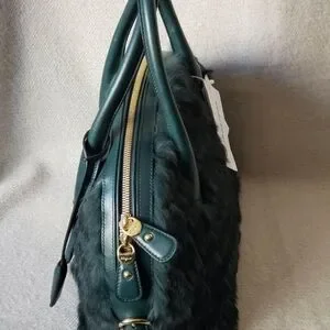 Authentic Salvatore Ferragamo rabbit fur green bag with crossbody strap