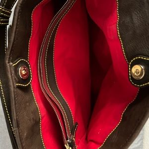 Dooney & Bourke Woven Leather Brown T’moro trim Chelsea satchel