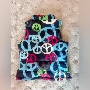 Old Navy Fleece Puffer Vest Peace Sign size Small 6-7