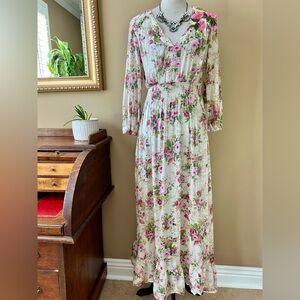 Aratta Silvent Journey Softness Floral Embroidered Maxi Dress V-Neck Size S