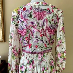 This romantic floral embroidered sheer back long sleeve Softness Dress from Aratta Silent Journey is gorgeous!
