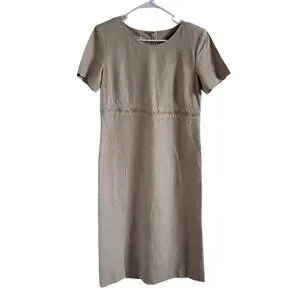 Talbots Woman Size 6 Vintage Linen Blend Maxi dress Floral embroidery Back Slit