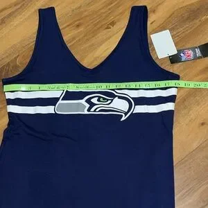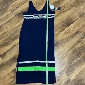 This is brand new with the tags still on it. It is super stretchy and comfortable. It has slits on the sides of the lake area to make it more feminine. This is a stylish way to support your favorite NFL football team. The dress is of great quality and not flimsy. It is 93% rayon 7% spandex. It is super comfortable. Just never had a chance to wear it to the game. This comes from a clean non-smoking kitten friendly home. I have other Seattle Seahawks outfits as well that are listed. Thank you so much for looking at my closet. I really appreciate it.💋