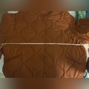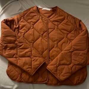 ASTR clay/rust quilted coat with snap buttons and pockets. excellent condition, worn once only. no flaws! perfect for autumns leaves falling down like pieces into place iykyk!