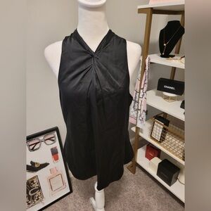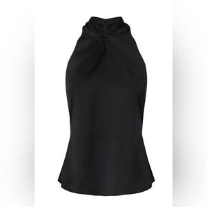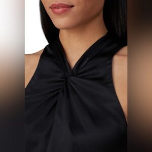 Black silk (100% Silk). Top. Sleeveless. Halter neckline. Center back zipper with hook-and-eye closure. 27" from shoulder to hemline. Imported.