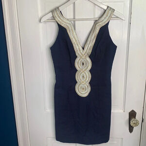 Lilly Pulitzer Valli Shift True Navy Dress New with Tag W-587 Sz 0