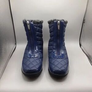 New Khombu Women's Shoe Ankle Boots Bootie Megan Waterproof Front Zip Navy Blue