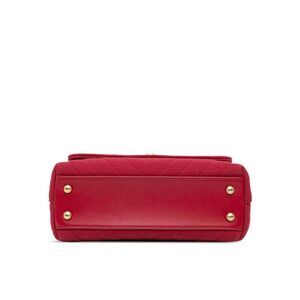 The Coco Handle bag features a chevron quilted jersey body a rolled leather top handle a detachable leather woven chain strap with leather guard a front flap with twist lock closure an exterior back slip pocket an interior zip pocket..