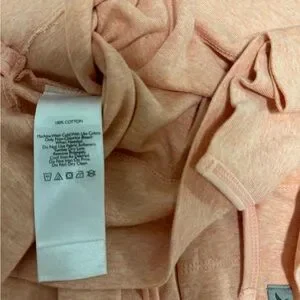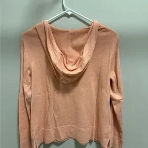 Long-sleeve, hooded with side slits at hem, light orange/peach color, 100% cotton. Smoke-free home. Reasonable offers welcomed!