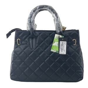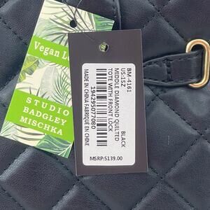 Badgley Mischka Black Quilted Tote Bag Small Vegan Leather Front Lock Crossbody
