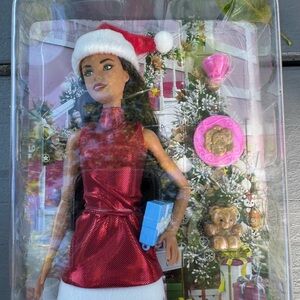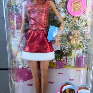 Barbie Mattel doll 2022 Christmas holiday red dress new accessories in the box