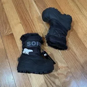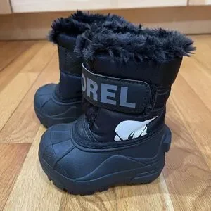 SOREL Snow Commander Toddler Boots Size 4 Black Faux Fur Winter NEW NO BOX