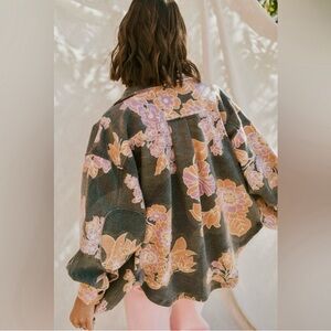 NWT Free People oversized Printed Ruby Jacket in Charcoal