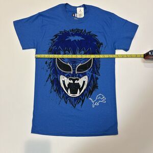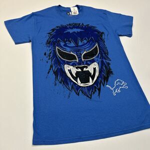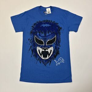 Detroit Lions Shirt Adult Small Blue NFL Football Logo Mask Tee Men