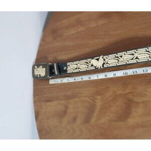 Handmade Mexican Leather Belt With Embroidered Rooster Design & Decorative Buckl