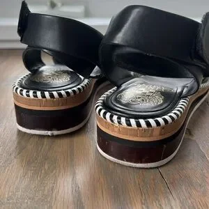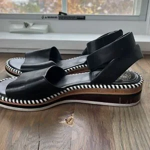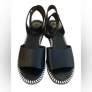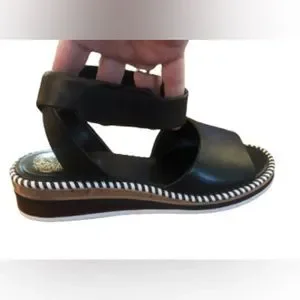 Vince Camuto Marieno black wide ankle strap leather espadrilles SZ 8.5