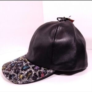 Vera New York Multi Leopard Rhinestone Faux Leather Cap